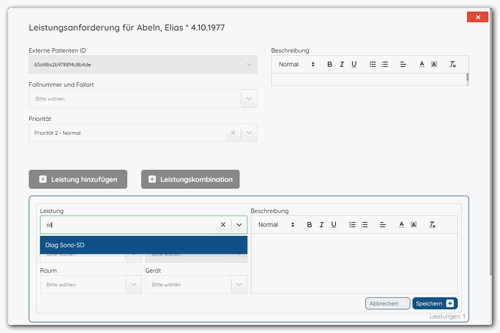 "SD" führt hier zu eindeutigen Auswahl der Leistung "Diag Sono-SD"