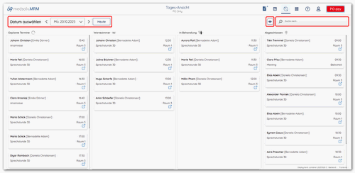- Der Patient in der Box ausgewählt ist (dann sind Patiententermine weiterhin über den Button aufzurufen).