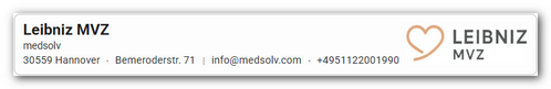 Im Kopf wird jetzt der Anzeigename (fett), die Firma und die komplette Anschrift sowie Mail und Telefonnummer gedruckt.