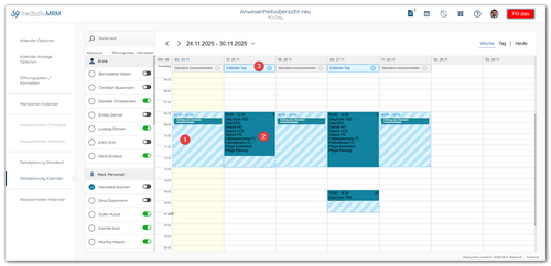 In Anwesenheiten Kalender oder Detailplanung Kalender werden nun automatisch die Einträge des Tages aus dem jeweiligen Standard übernommen und angezeigt.