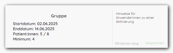 Zusätzlich zu einer Beschreibung des Rahmenplans selbst kann für jede Aktivierung eine Notiz angelegt werden. Die Eingabe wird automatisch gespeichert, der Hinweis Gespeichert erscheint im Augenblick des Speicherns.