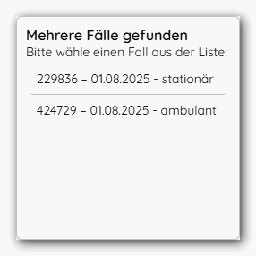 - mehrere passende Fallnummer ➡️ alle passenden zur Auswahl