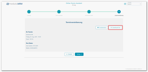 Termine des Online-Termin-Assistenten können jetzt vom Patienten heruntergeladen und in den eigenen Kalender, z.B. Outlook, importiert werden.Notification-Service